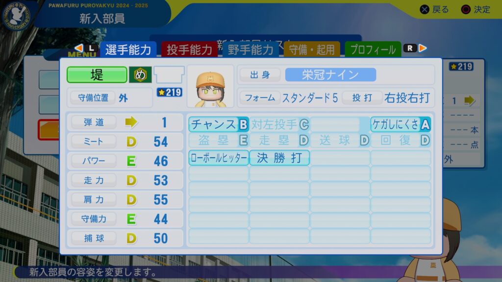 本当はもうちょっと1年生を入れたい気分はあるんですが、あんまし起用できそうにないなぁ。 ただ、天才肌の鈴木君は起用せざるを得ないので、一塁コンバートしてでも起用するかな。 外野手の1年生達は即起用とはならなさそうですが、育成に時間がかかりそうな子達は来年の入学生に合わせてコンバートという形をとろうかな。