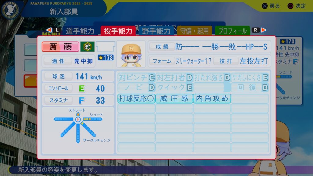 球速141km/hに変化球2球種で総変4と悪くはないかなぁ~。ただ、即戦力には物足りないかなぁ。3年生の時にエースとして、頑張ってくれたらいいなっていう感じで育てていこうかな。