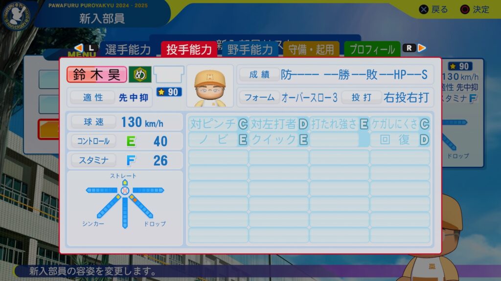 3球種総変5なんで、こっちをエースにするべきだったか。と若干後悔している感もあるんですがね。