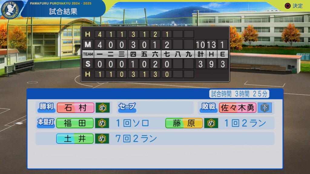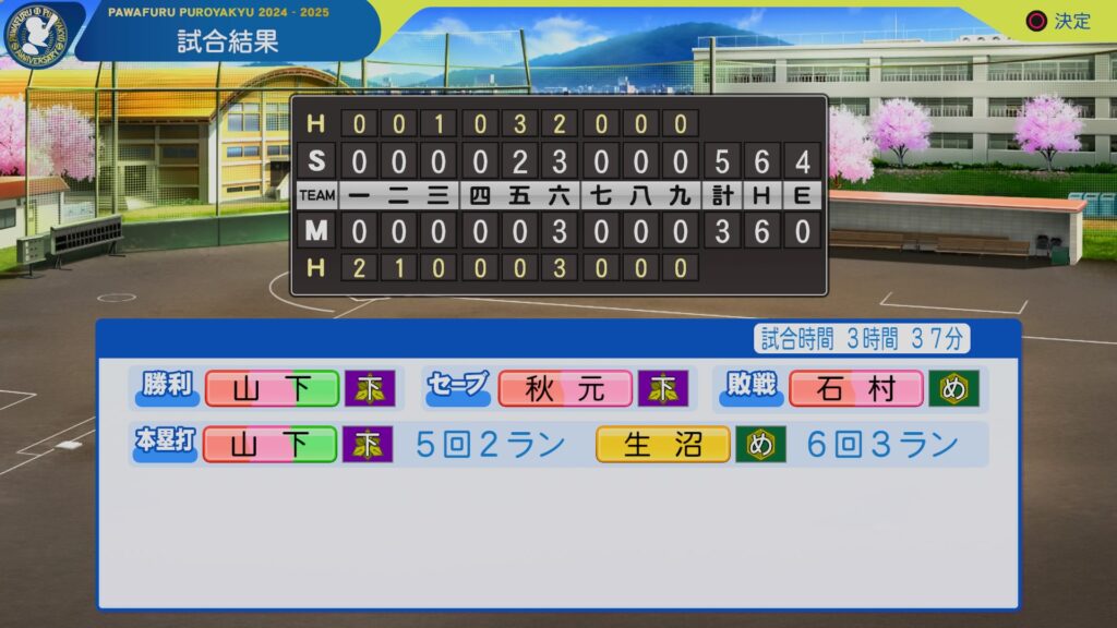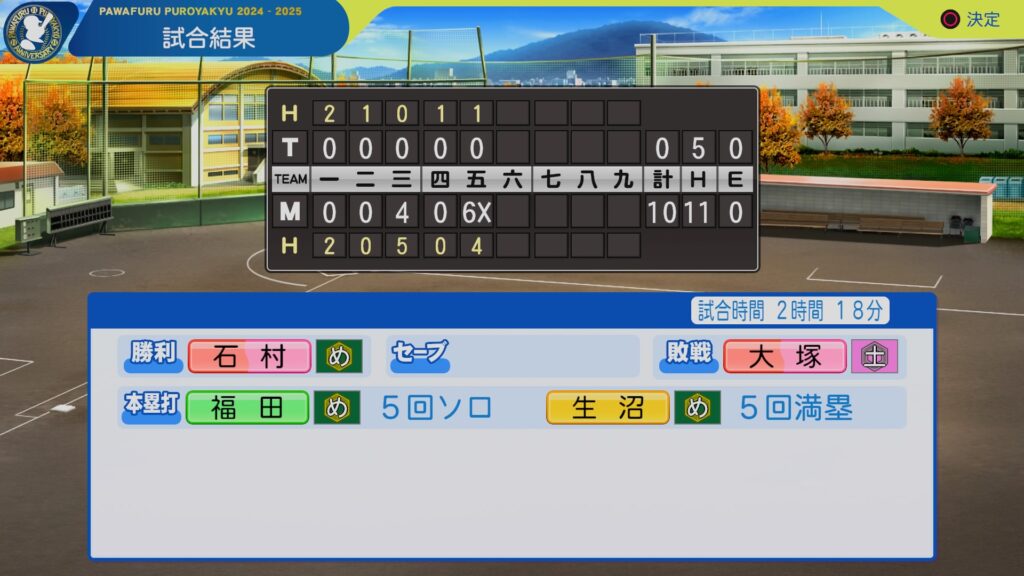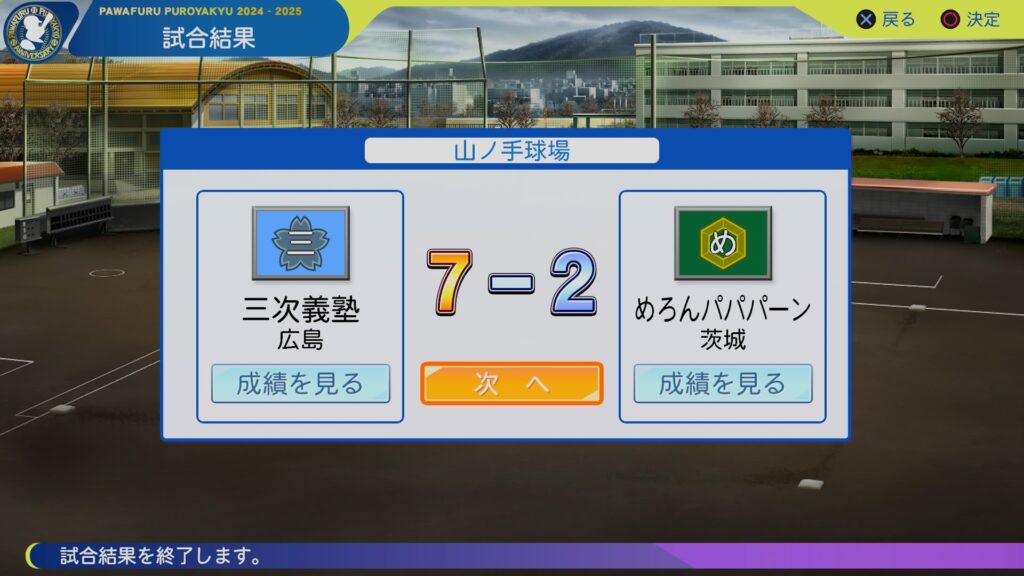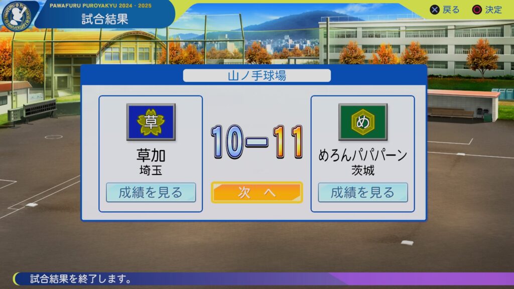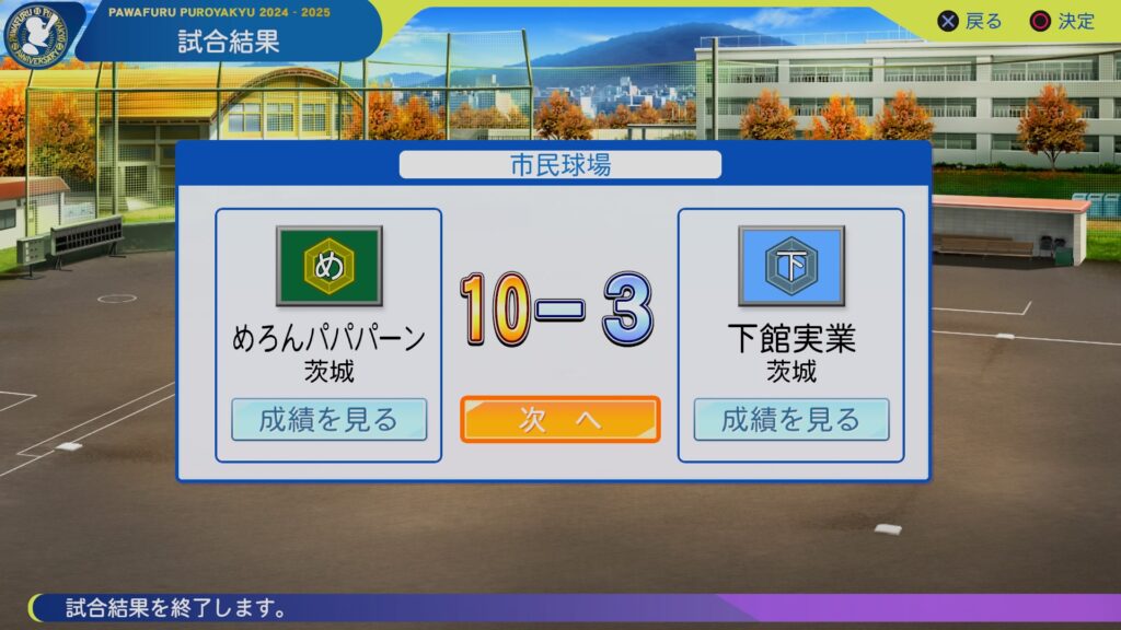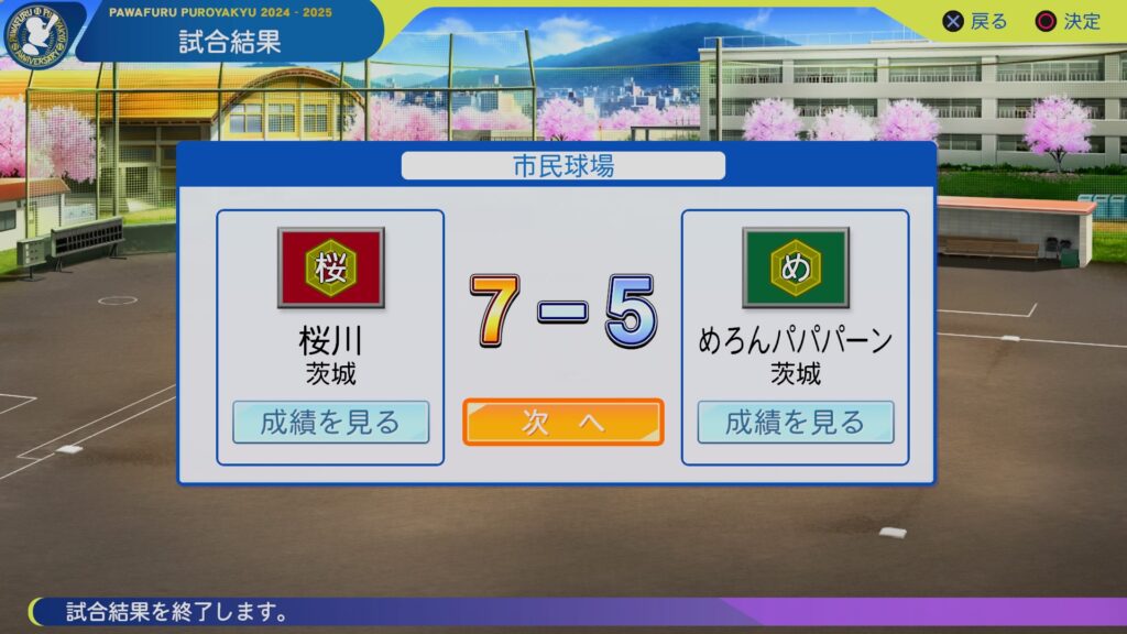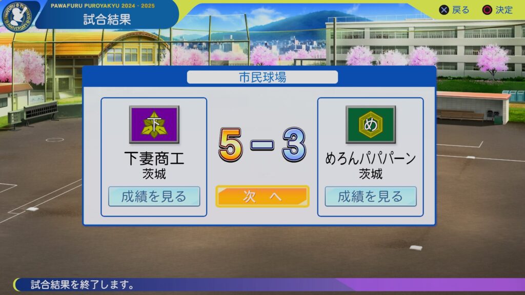 無事甲子園で学校評判も名門に戻っているので、下手に負けて強豪落ちするのも嫌なんで、勝ち進めて、学校評判も余裕を持ちたい。