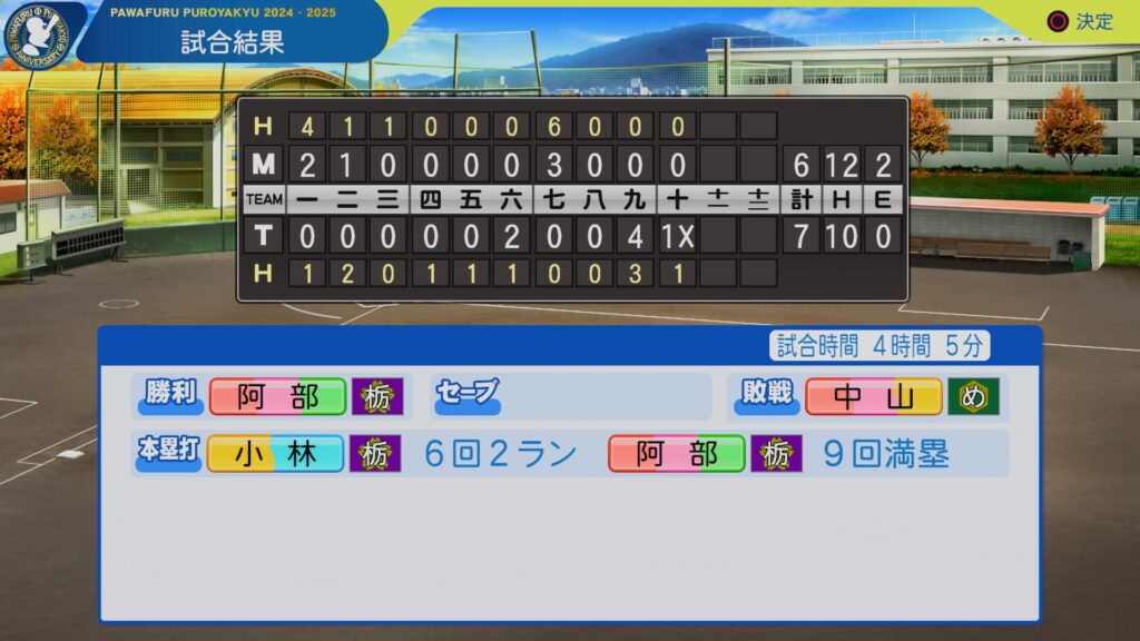 なんか気が抜けていたのか、点差のコントロールを忘れている間にサヨナラ満塁ホームランでコールド勝ちしちゃいました。