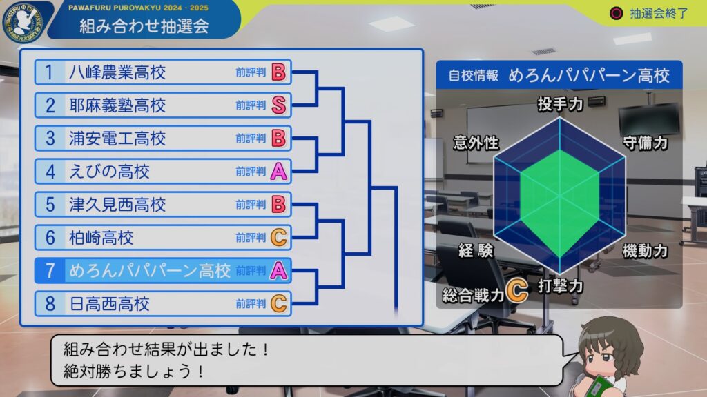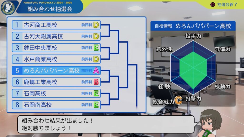 準々決勝は戦力Cの取手工業との試合。ここ2試合の相手よりは強いもののちゃんと点を取って勝利できましたね。