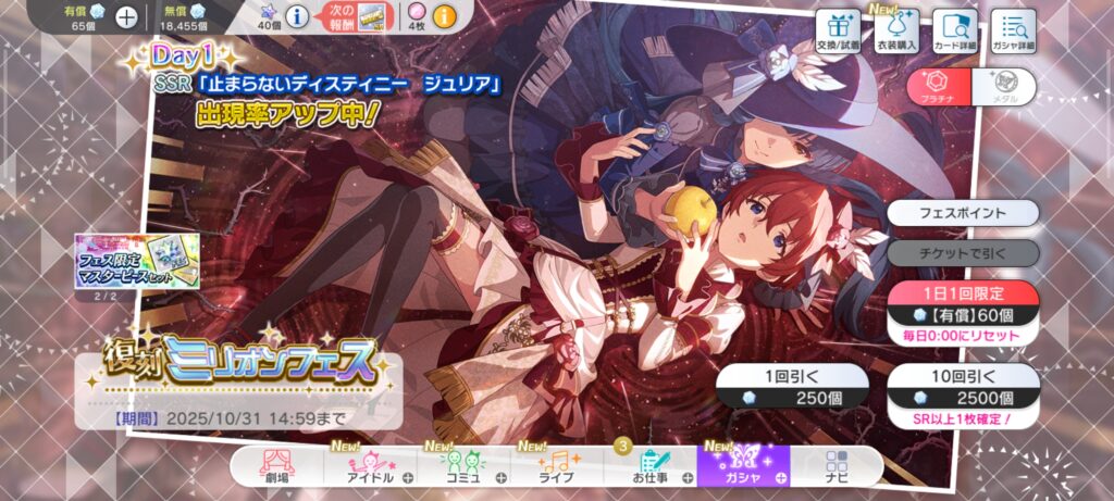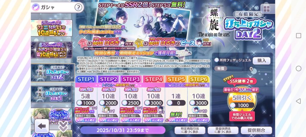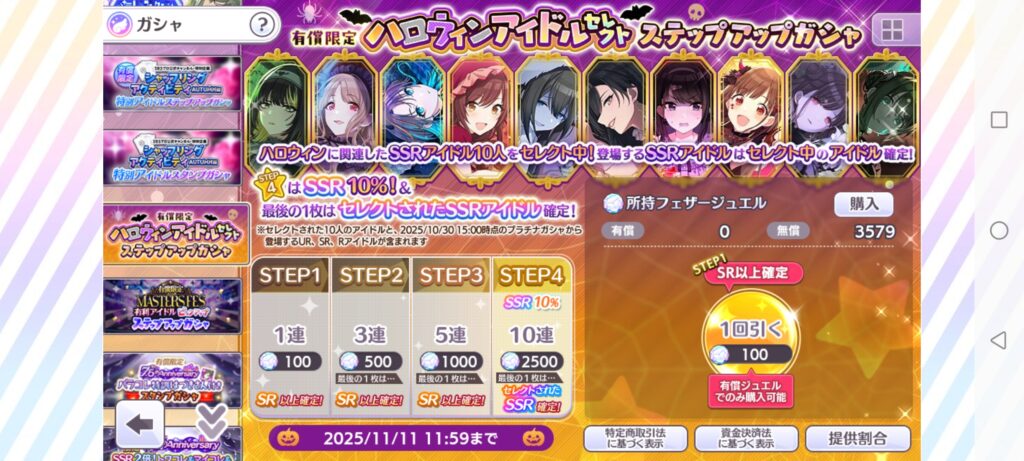 - 有償限定 ハロウィンアイドルセレクトステップアップガシャ [~11/11 11:59]
