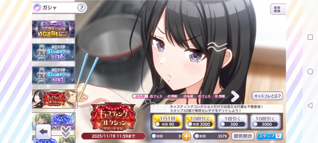 10月の月末ガシャはハロウィンから離れて、秋雨の季節に相応しい三峰結華のガシャが来ましたね。