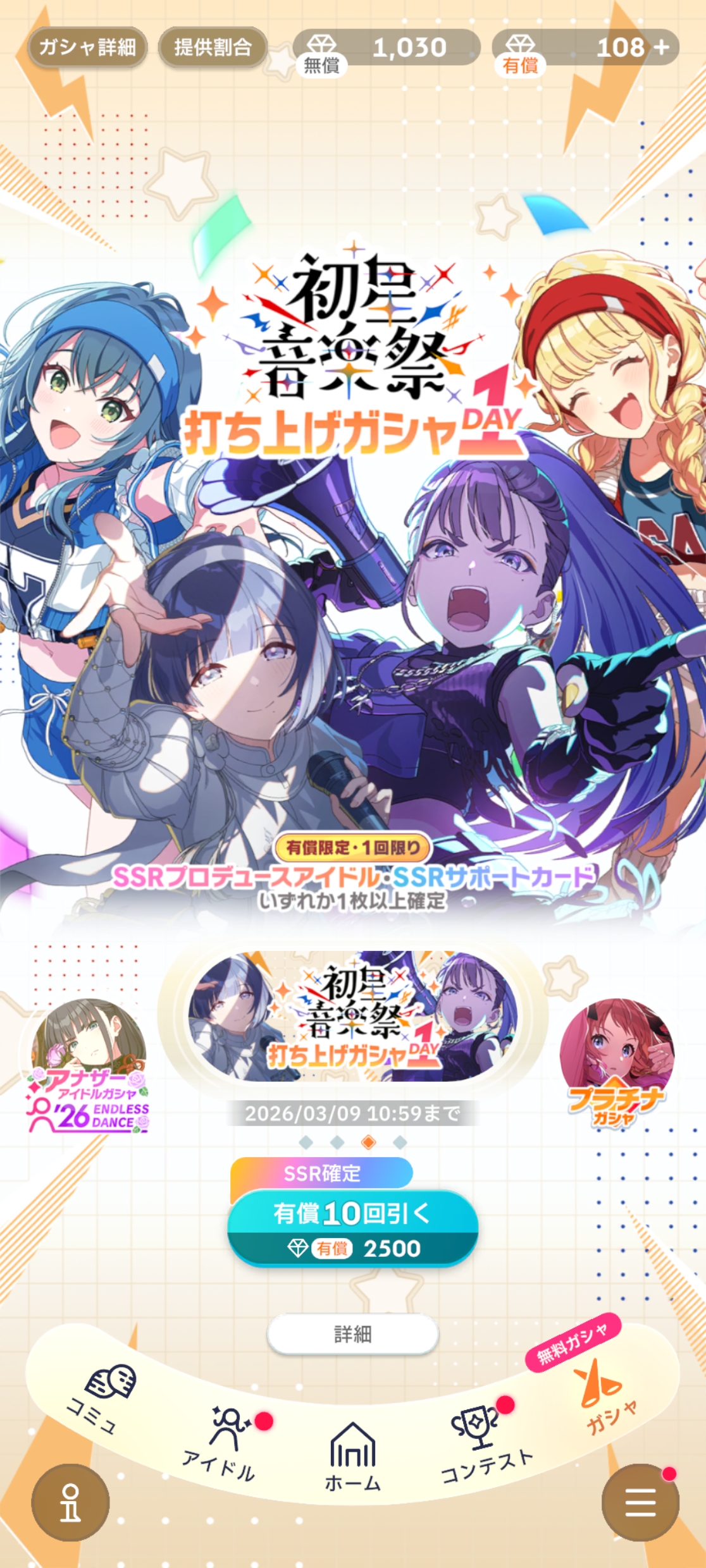 初回10連無料 アナザーアイドル’26 ENDLESS DANCEガシャ