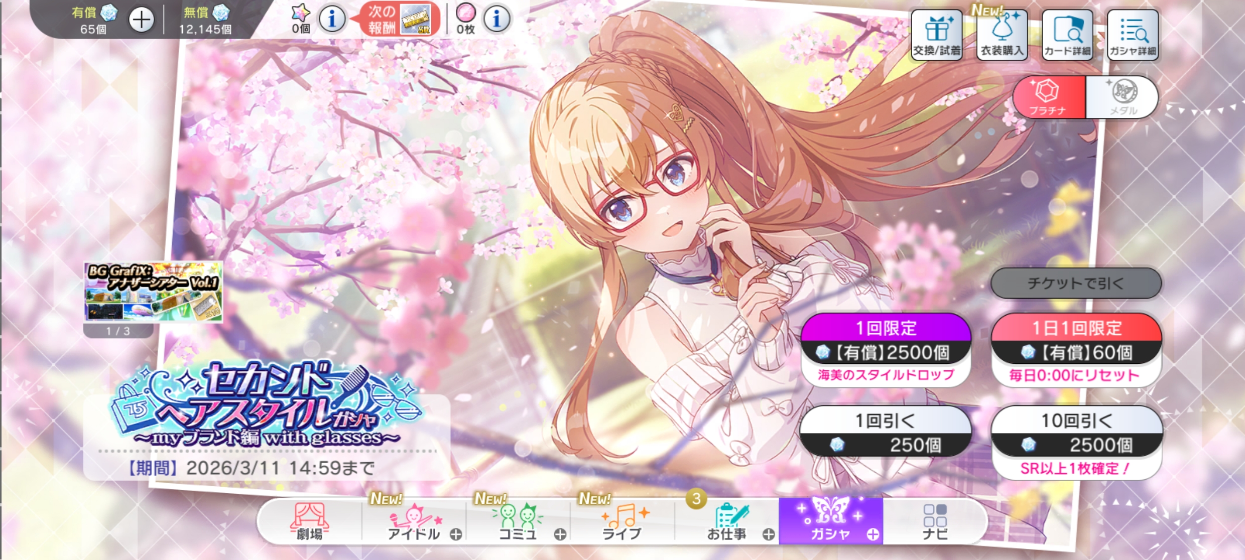 | 〃 | 🏰 デレステ | プレミアムオーディションガシャ ブラン [~03/31 23:59] |
