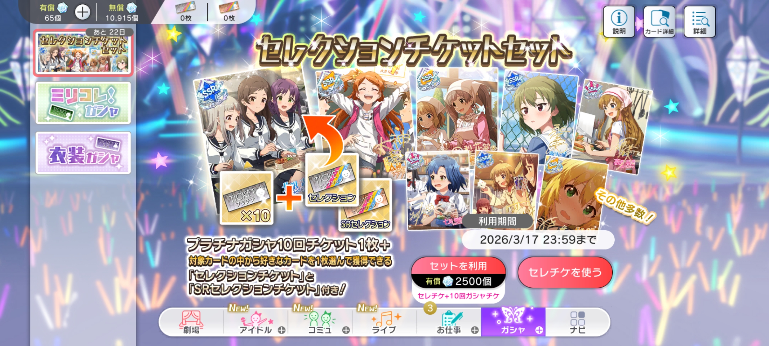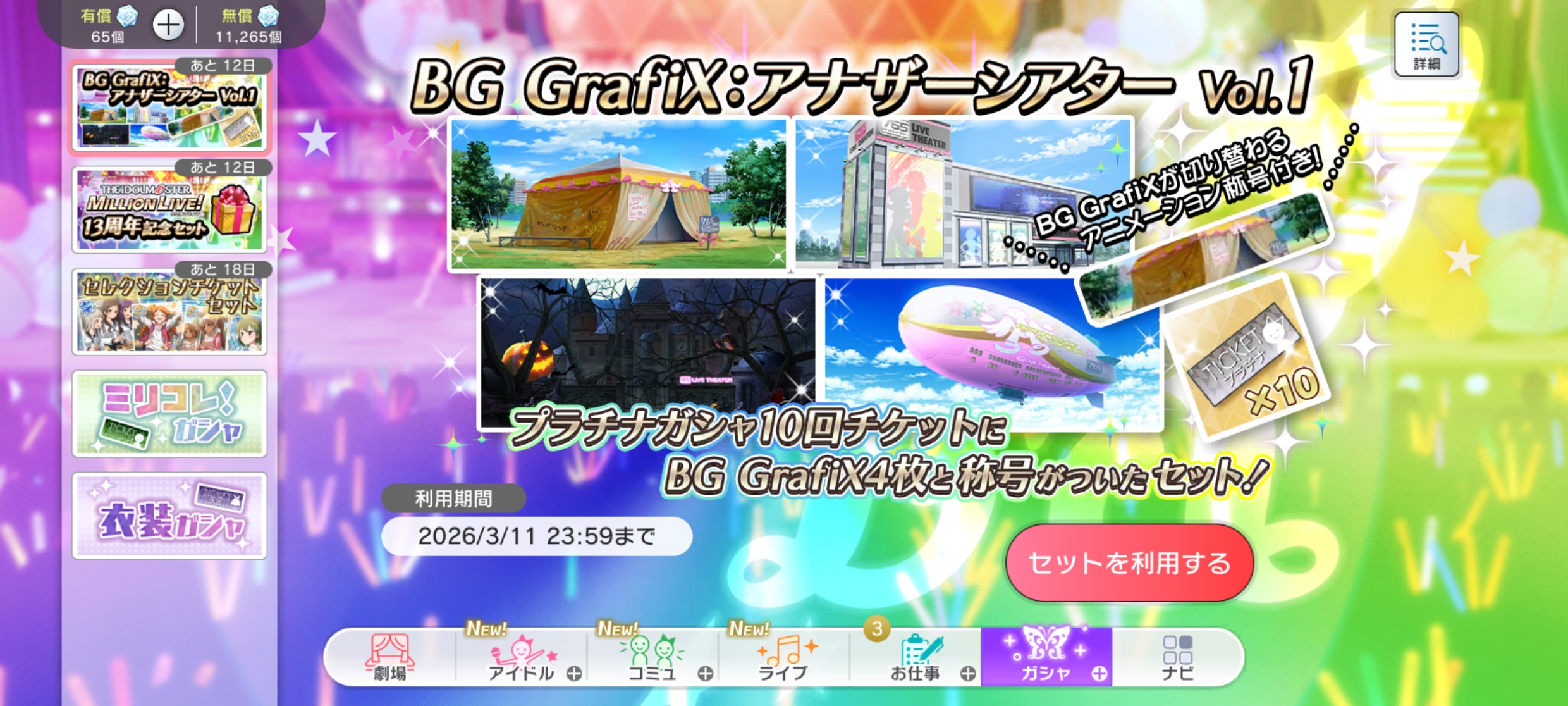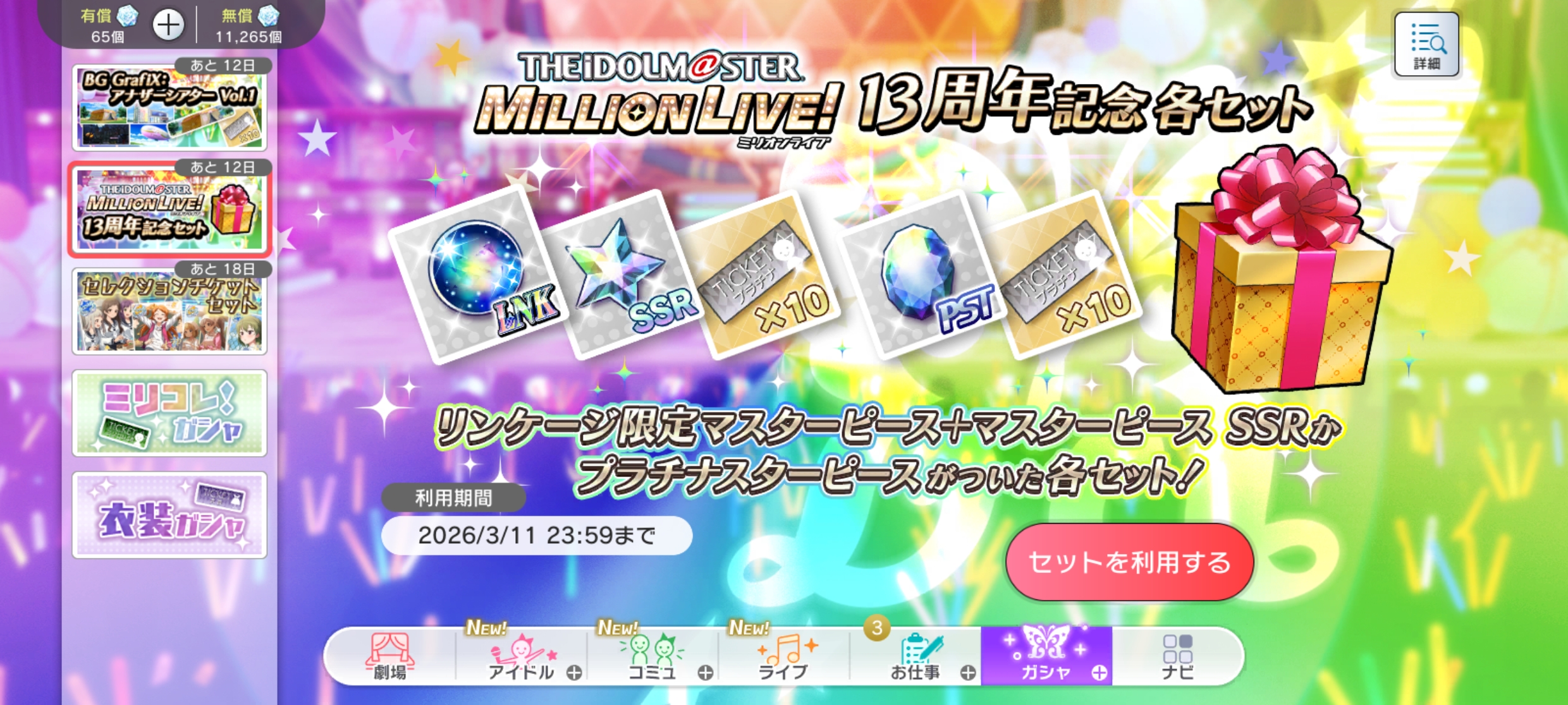 | 〃 | 🏰 デレステ | 3月『スペシャルガシャセット』 [~03/31 23:59] |