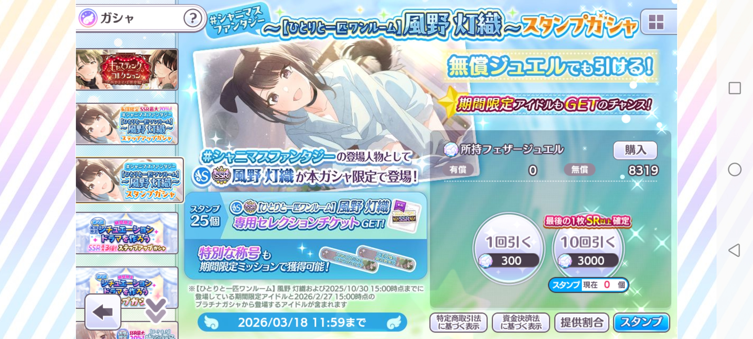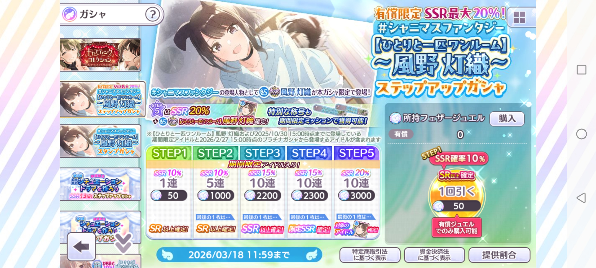 有償限定 SSR最大20%! #シャニマスファンタジー~【ひとりと一匹ワンルーム】風野 灯織~ステップアップガシャ