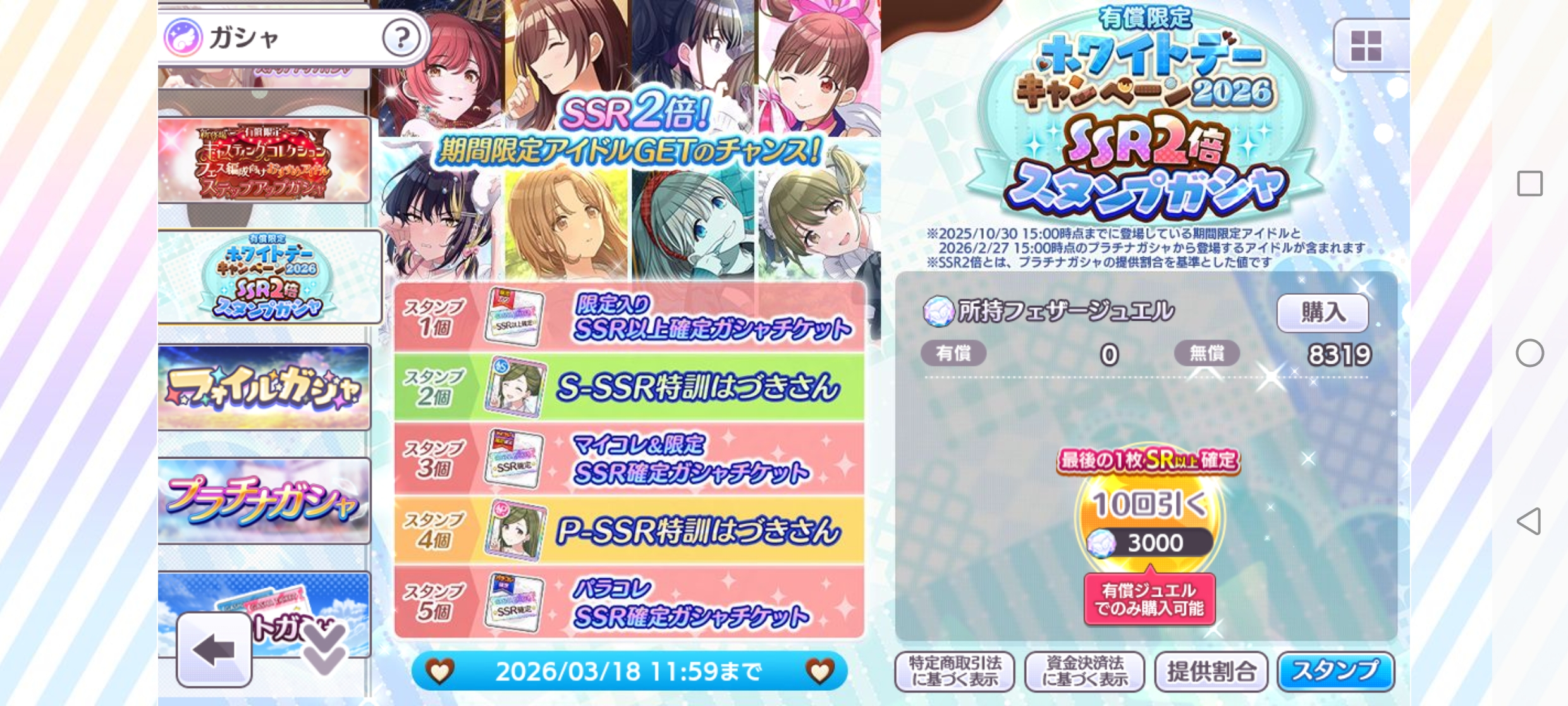 有償限定 ホワイトデーキャンペーン2026 SSR2倍スタンプガシャ