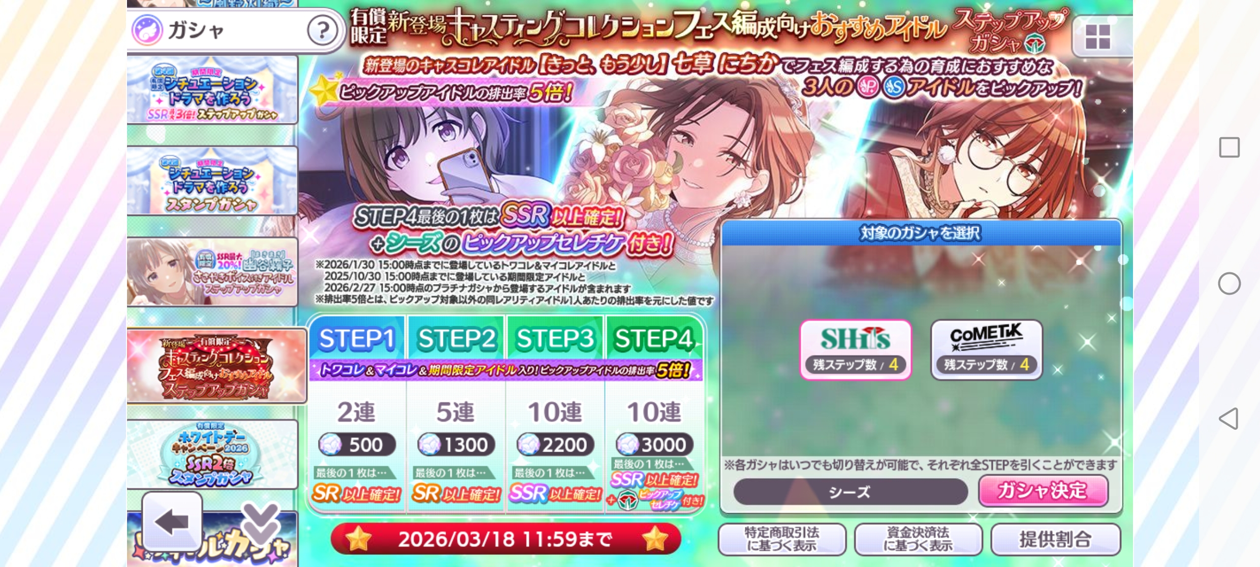 有償限定 新登場キャスティングコレクション フェス編成向けおすすめアイドルステップアップガシャ