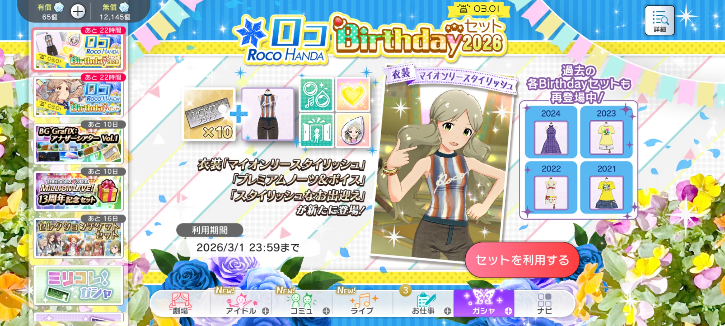 | 〃 | 🦋 ミリシタ | ロコBirthdayセット2026 [~03/01 23:59] |