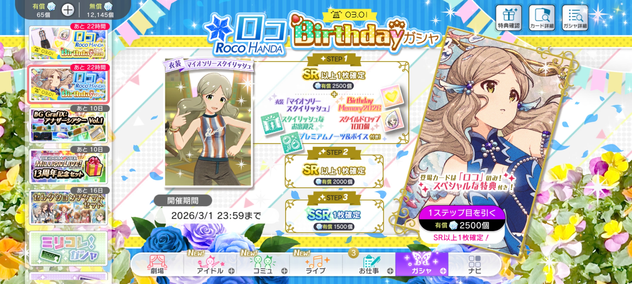 | 〃 | 🦋 ミリシタ | ロコBirthdayガシャ [~03/01 23:59] |