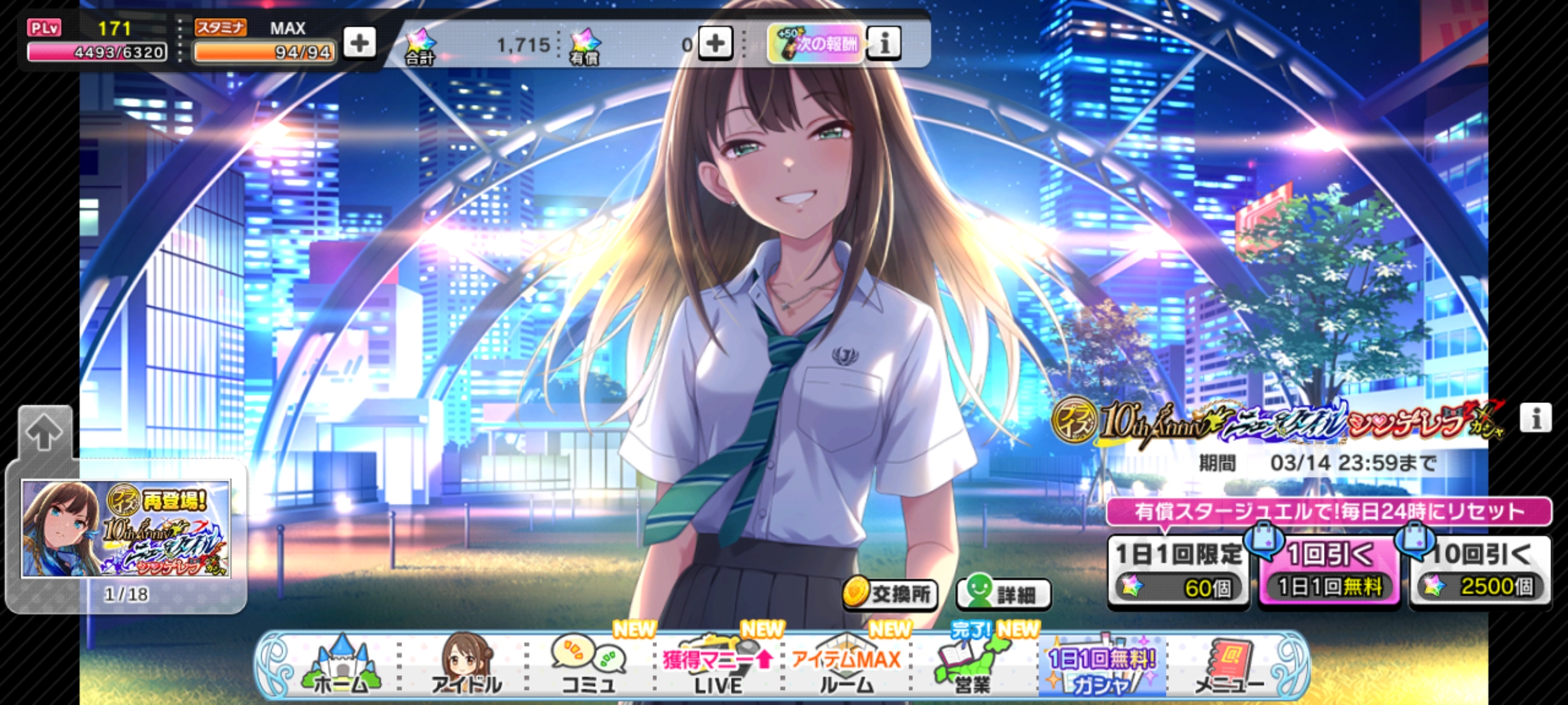 | 〃 | 🏰 デレステ | 10th Anniv ニュースタイルシンデレラガシャ [~03/14 23:59] |