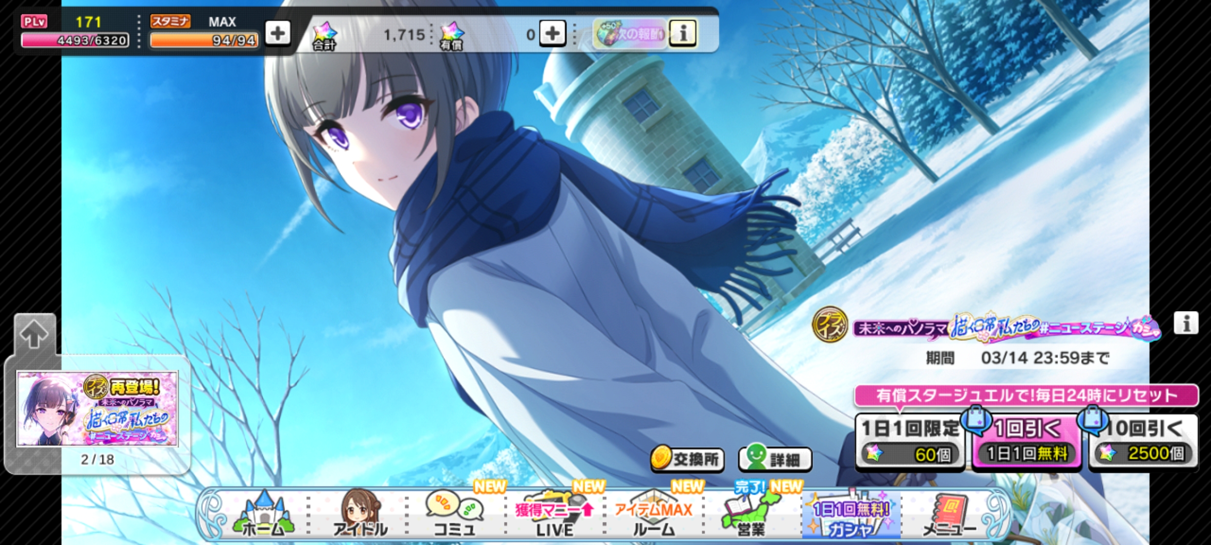 | 〃 | 🏰 デレステ | 未来へのパノラマ 描く日常 私たちの #ニューステージガシャ [~03/14 23:59] |