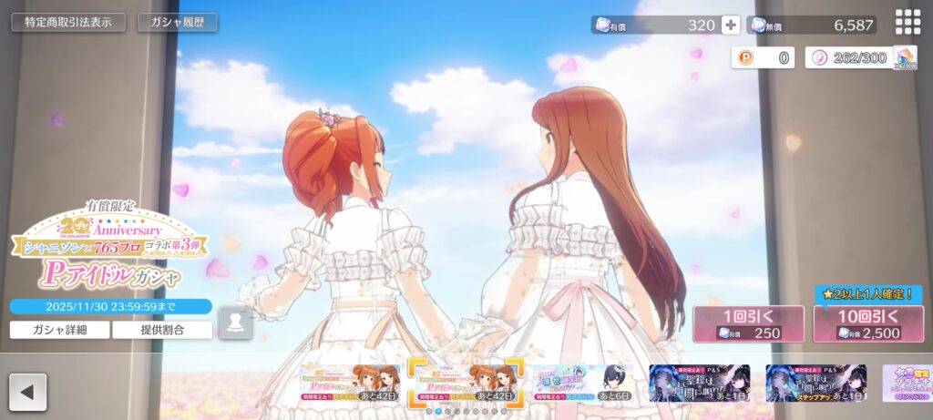 有償限定ガシャも同時開催!こちらのガシャでは、★3プロデュースアイドルからはやよい・伊織のみが排出されるガシャとなっています。