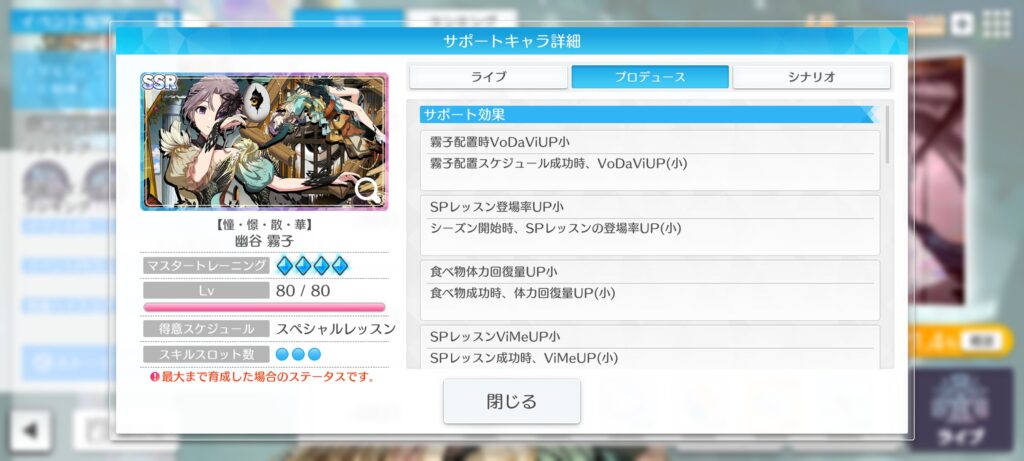 | 霧子SPレッスン配置率UP中 | 霧子のSPレッスン配置率UP(中) |