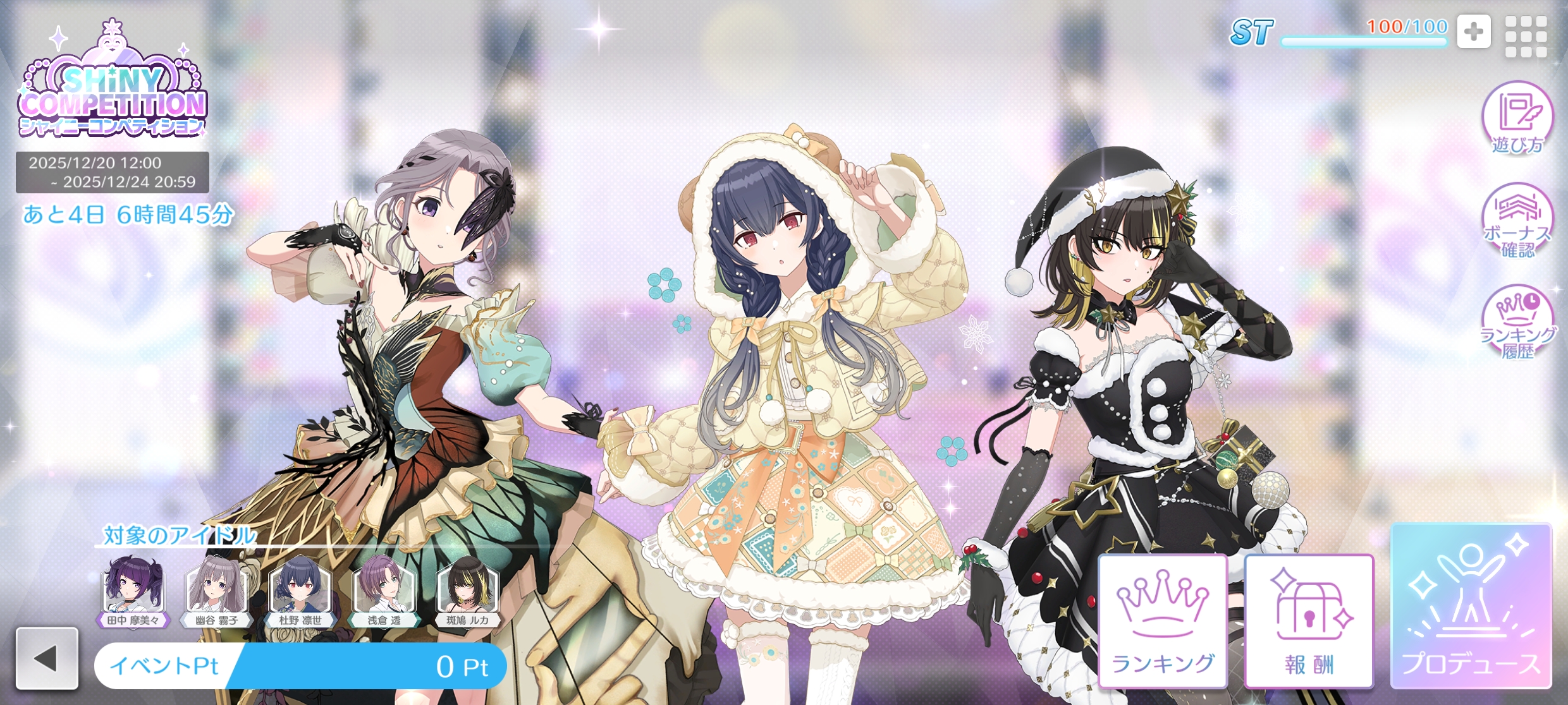 今回は2025/12/20開始のプロデュースミニイベント「シャイニーコンペティション」のイベント情報となります。