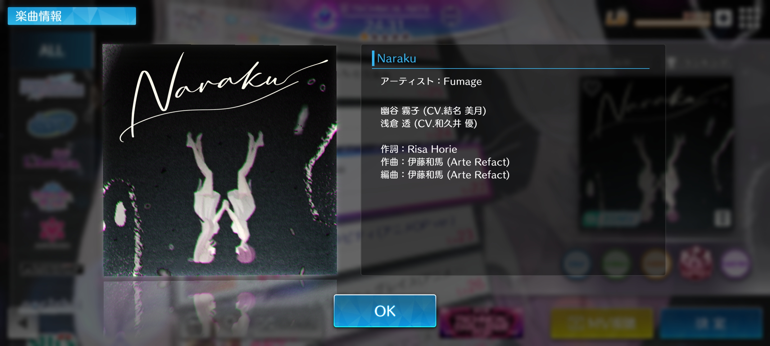 今回の2DMV楽曲の追加はFumageのユニット曲「Naraku」となりました!