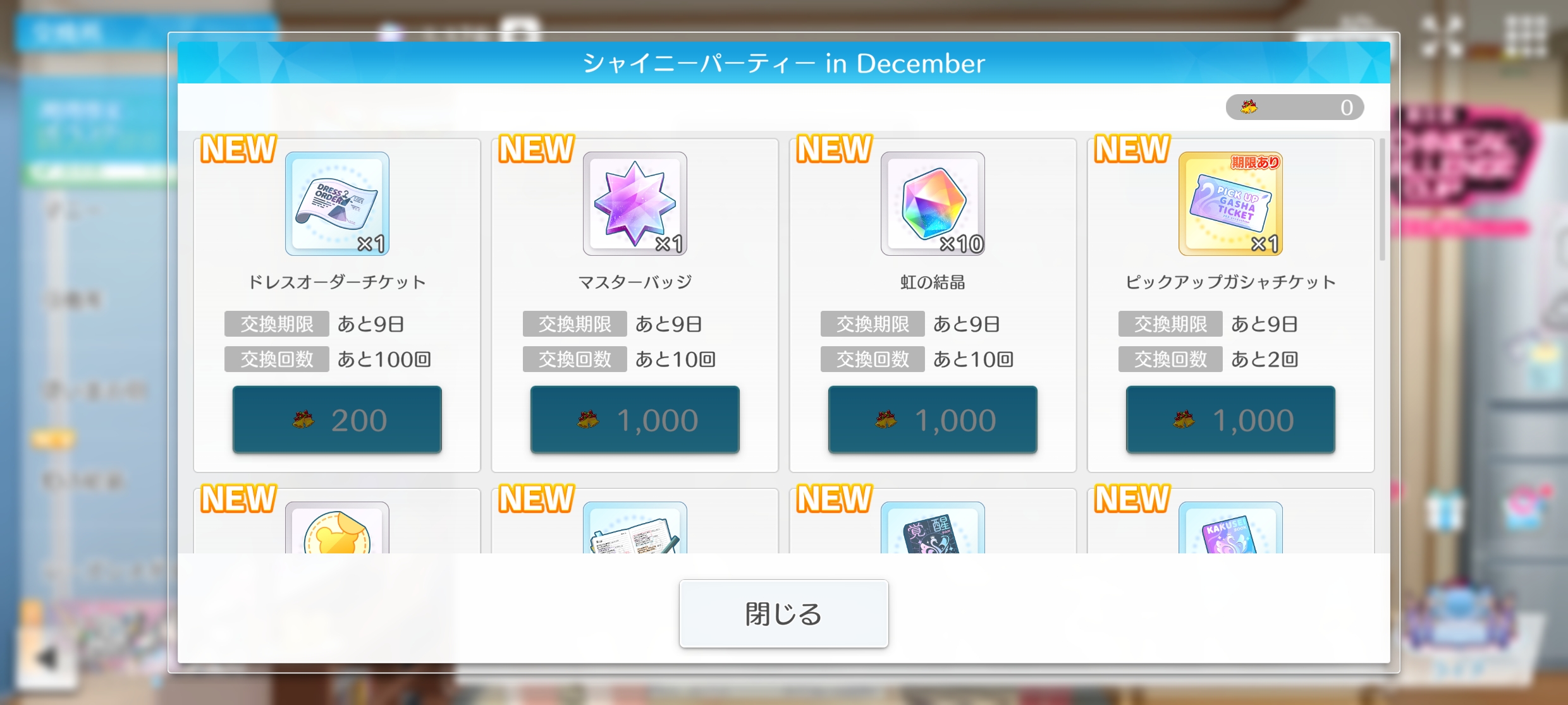 | ドレスオーダーチケット×1 | 200個 | 100回 | 20000個 |