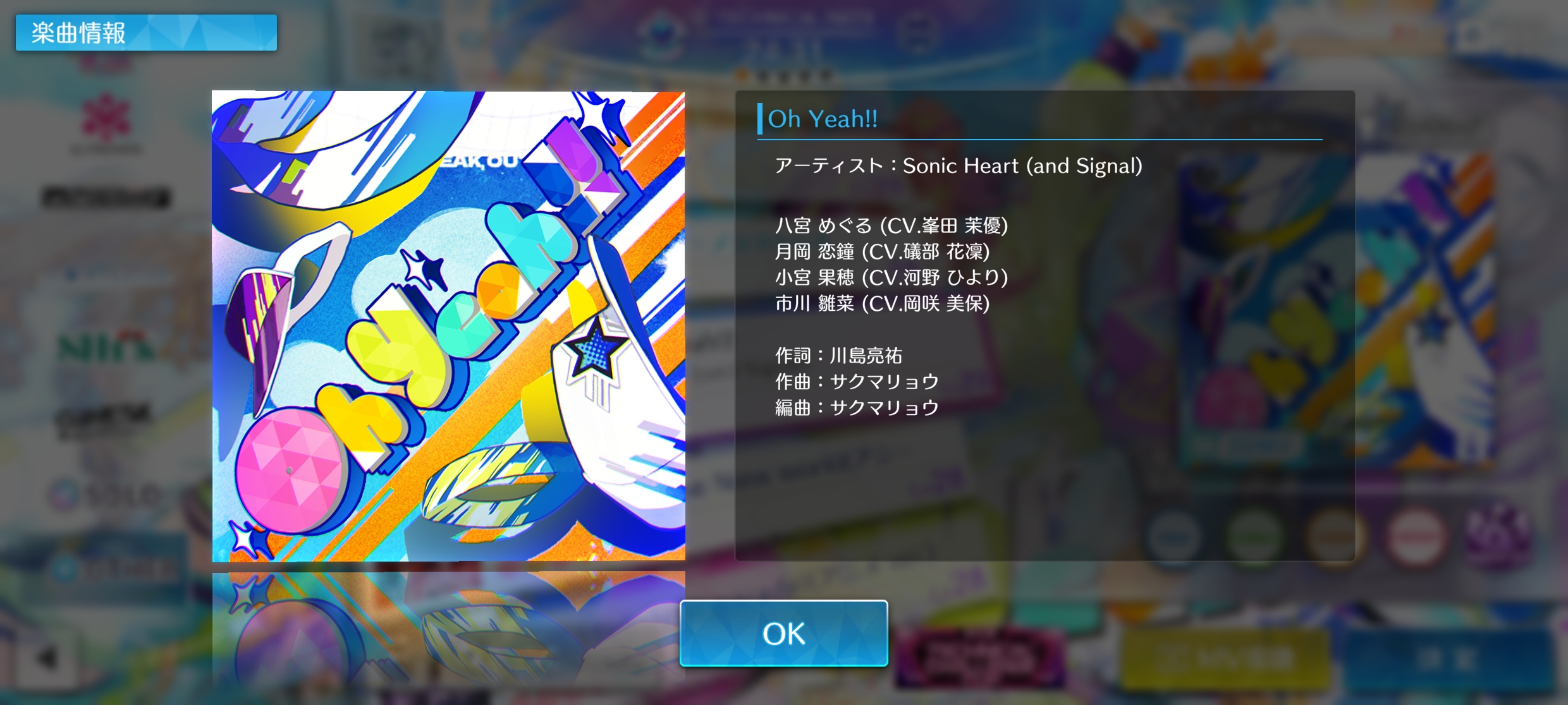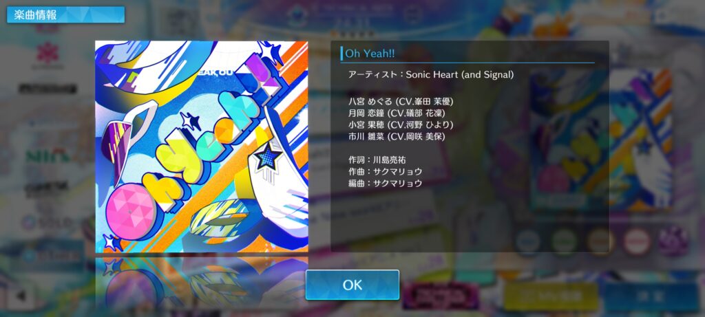 | ソロ曲「Oh Yeah!!」を コンボランクS以上でクリアしよう (手動プレイのみ) | ・虹の結晶×10 |