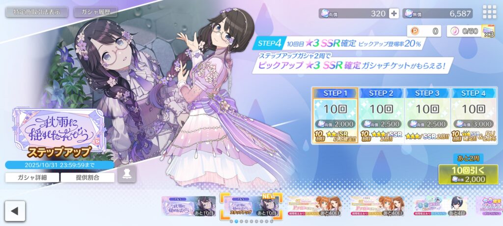 秋雨に揺れた花びら」ガシャには、有償限定のステップアップガシャもあります。