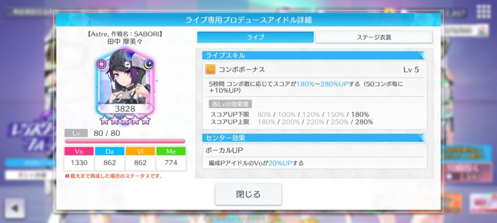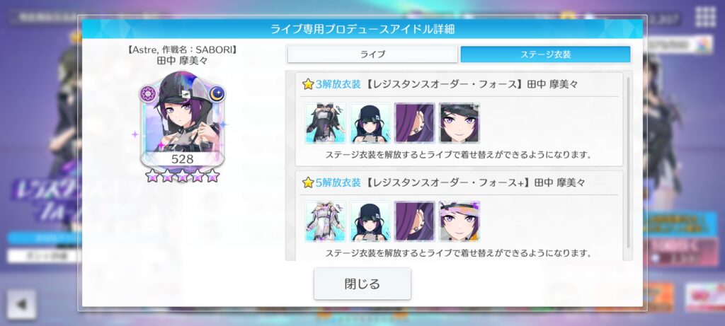 5. ★★【Astre, 作戦名:SABORI】田中 摩美々