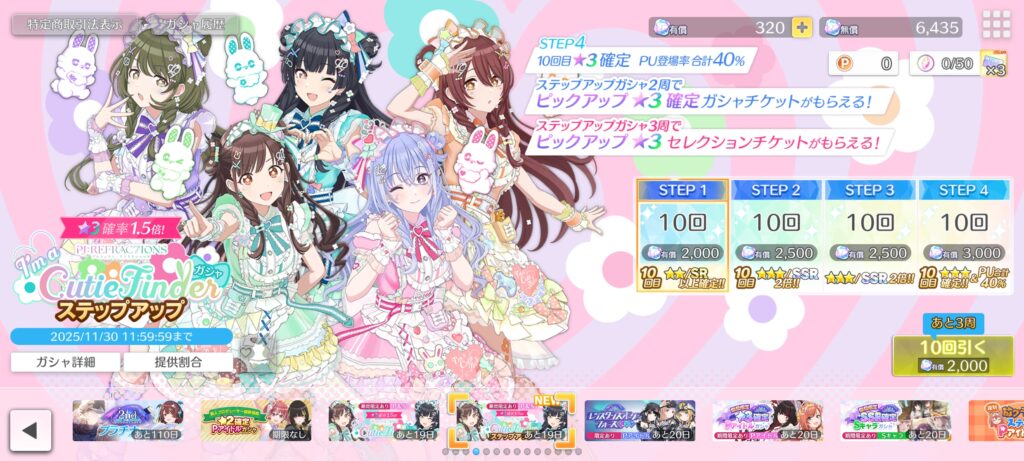 「PJ: REFRAC7IONS I’m a Cutie Finderガシャ」には、有償限定のステップアップガシャもあります。