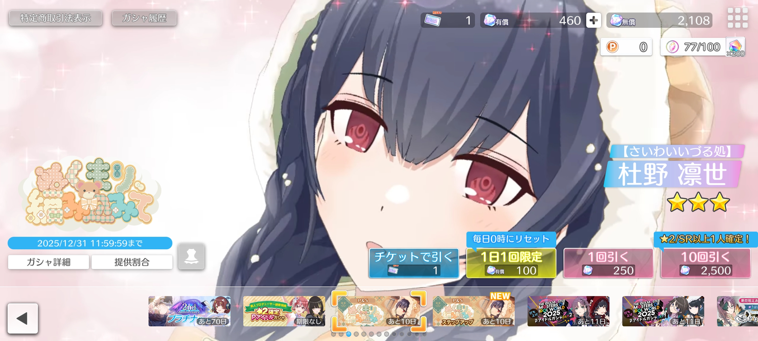 | ★★★【さいわいいづる処】杜野 凛世 SSR【小箱に秘めたる】杜野 凛世 | 60 | 200pt |