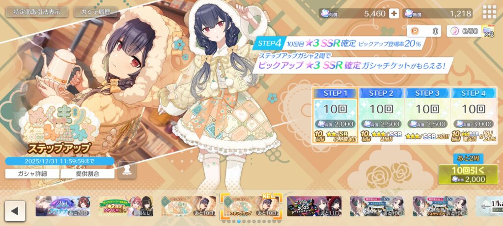 「ぬくもり、編み込みて」ガシャには、有償限定のステップアップガシャもあります。