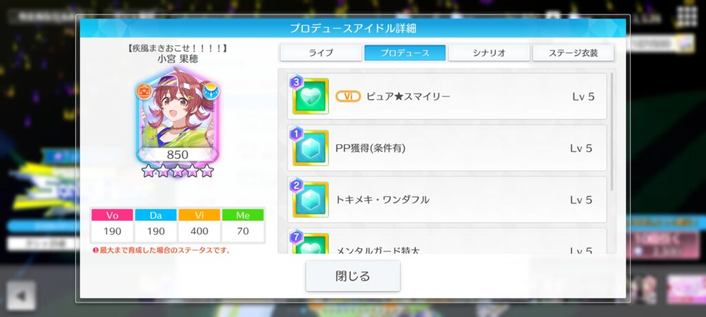 プロデュースステータス(アイドルスキル)