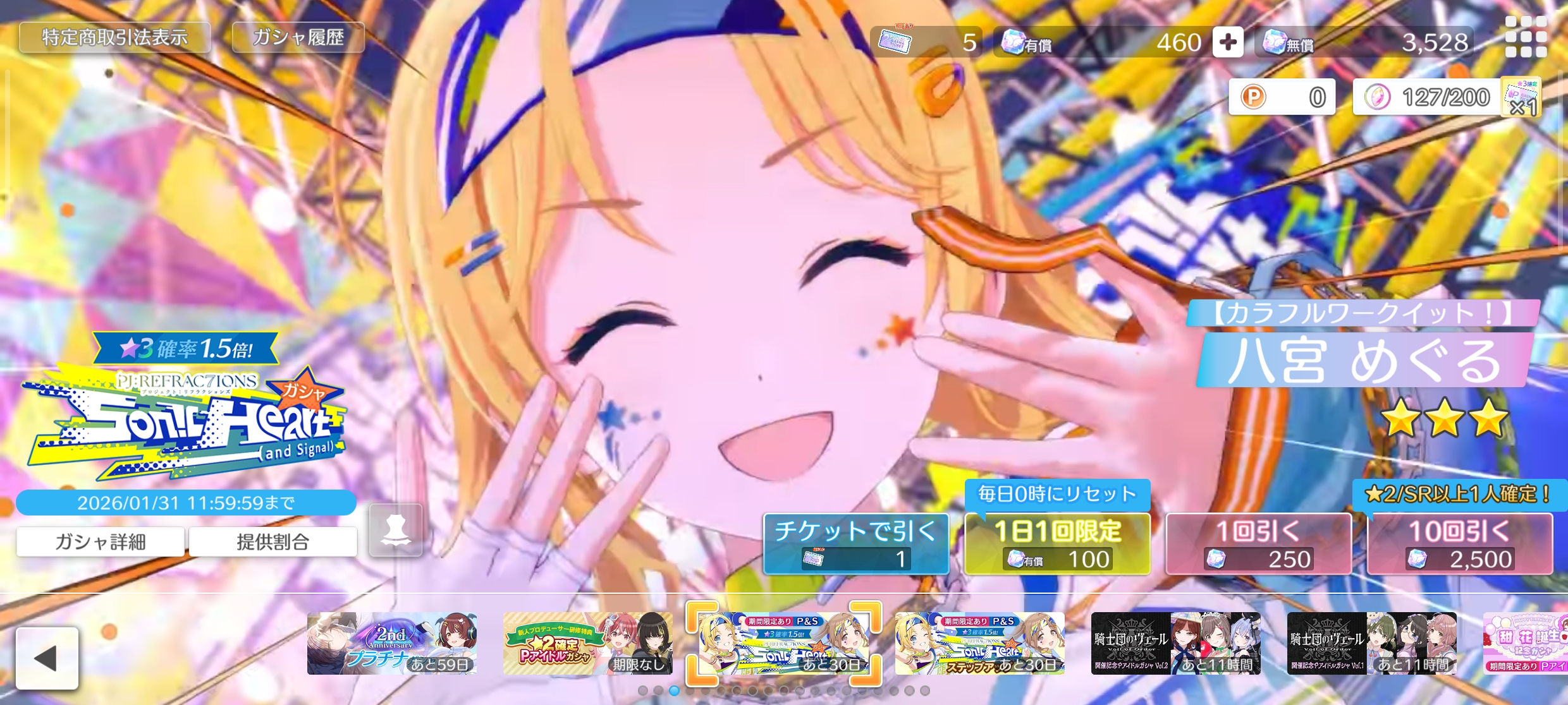 今回のピックアップ★3Pアイドルは全員期間限定となり、他ユニットのPJ: REFRAC7IONSガシャでは登場しないので、欲しい人はこの機会に引けるように祈ろう。