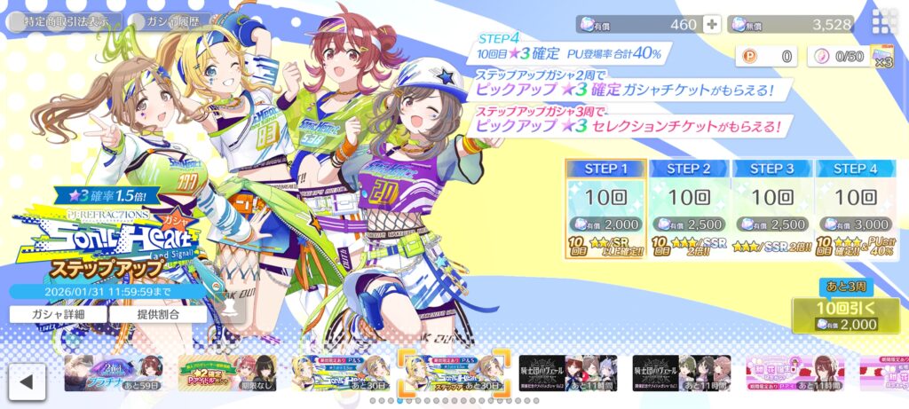 「PJ: REFRAC7IONS ソニックハートアンドシグナルガシャ」には、有償限定のステップアップガシャもあります。