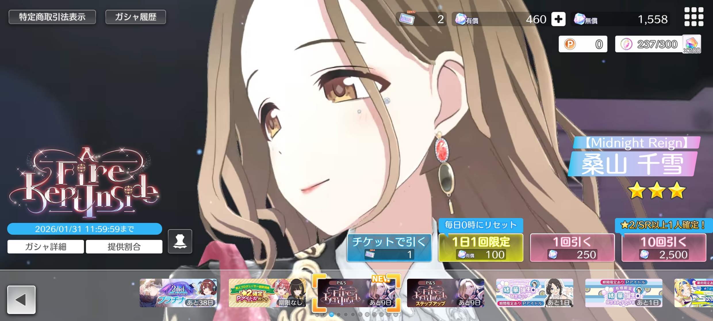 今回は期間限定アイドルはなく、千雪さん単独PUのガシャとなります!!