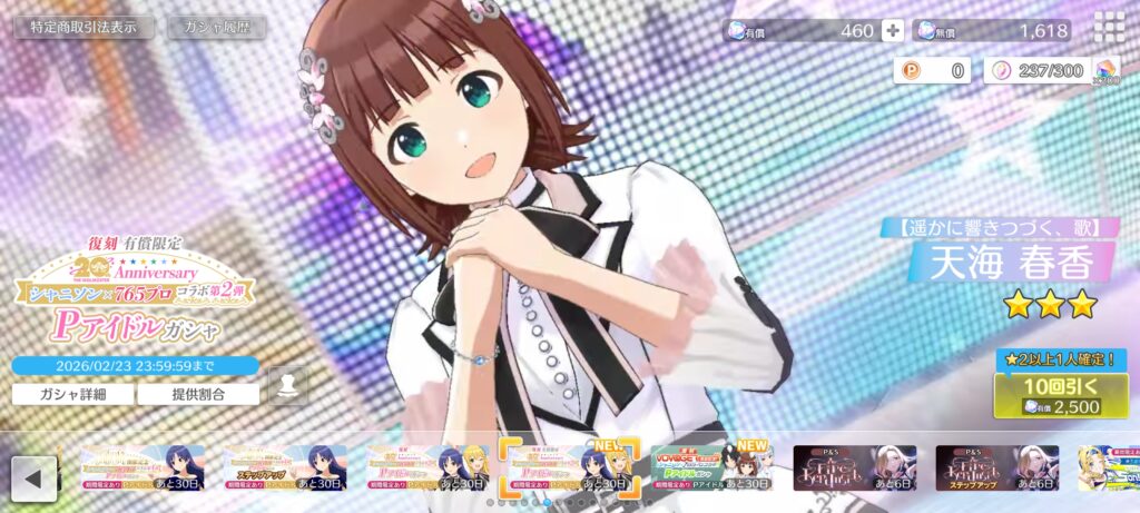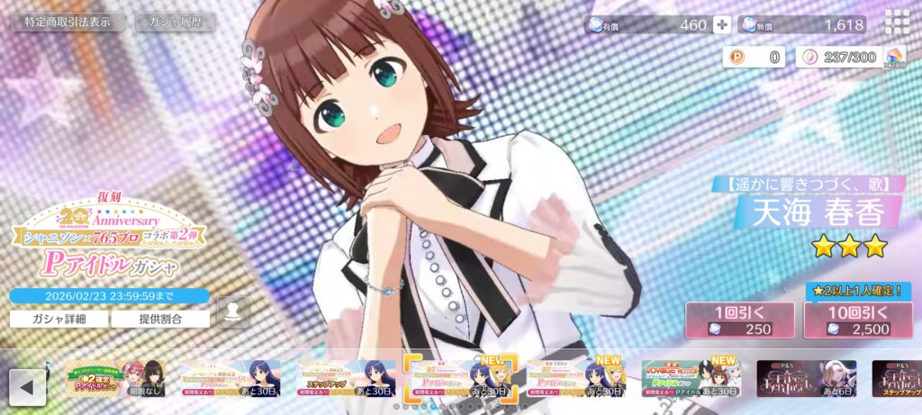 第1弾の「VOY@GER実装記念!シャニソン×765プロコラボPアイドルガシャ」も復刻中!