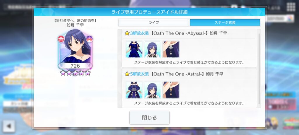 | 如月 千早をセンターにして難易度HARD以上を2譜面クリアしよう (手動プレイのみ、同じ曲の別難易度も可) | ・ドレスオーダーチケット×50 |