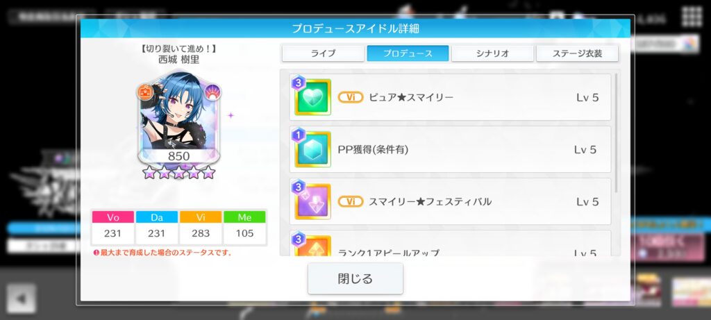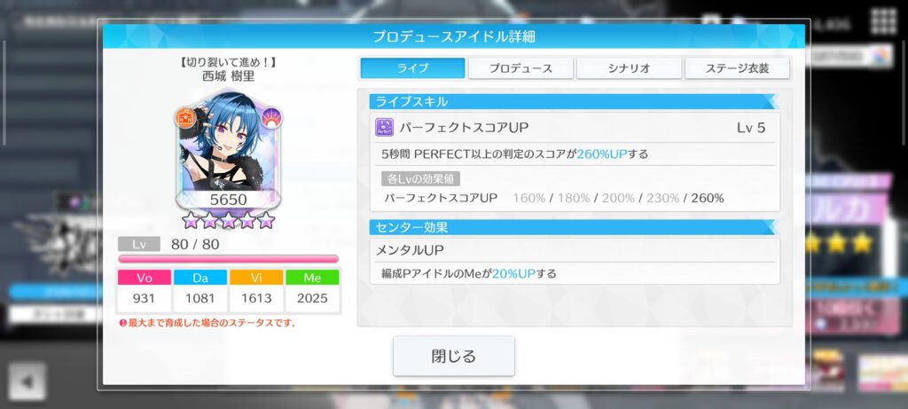 Not bad【切り裂いて進め!】西城 樹里をLv60まで育成する