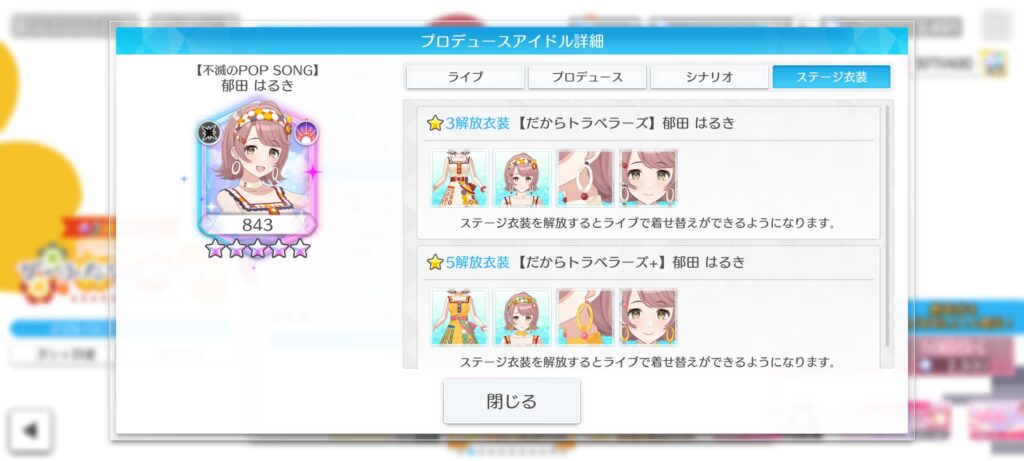 | Track15 – 君去りし | 【不滅のPOP SONG】郁田 はるきをLv40まで育成する または該当シナリオをプロデュース内で閲覧する |