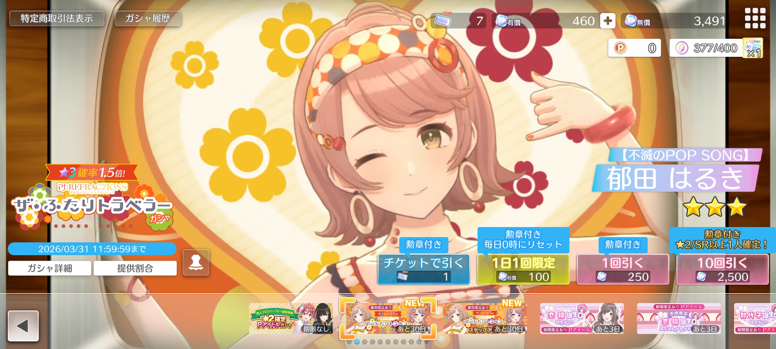 今回のピックアップ★3Pアイドルは全員期間限定となり、他ユニットのPJ: REFRAC7IONSガシャでは登場しないので、欲しい人はこの機会に引けるように祈ろう。