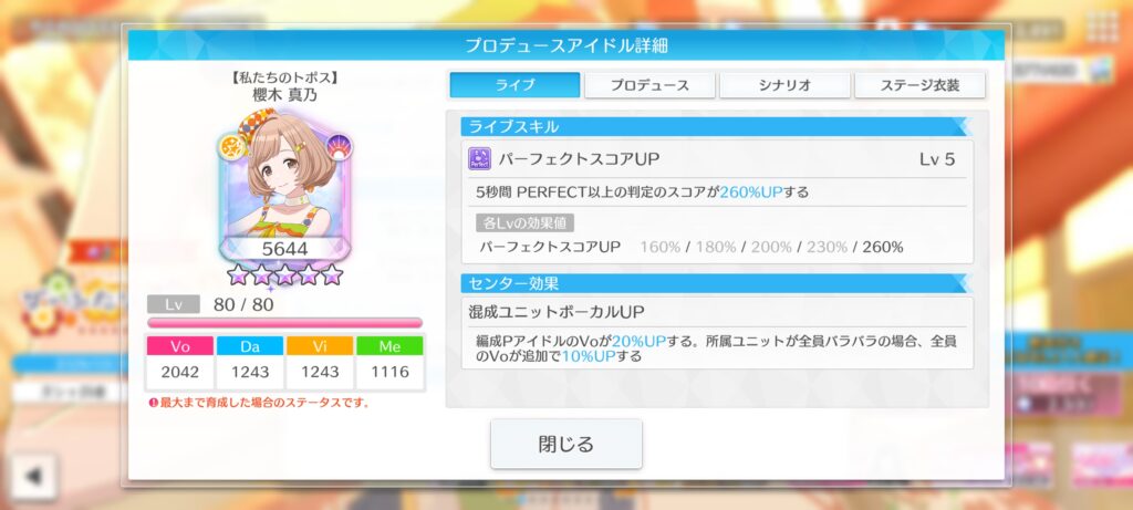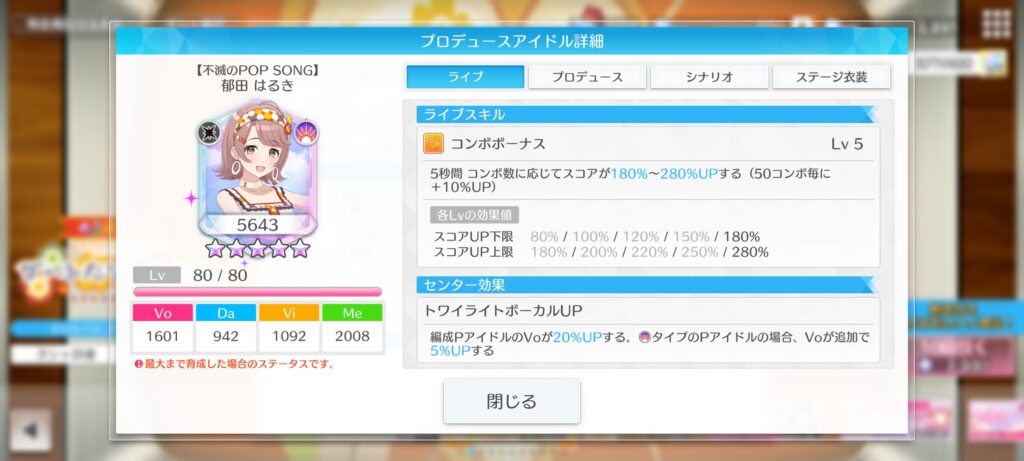 | Lv5[5] | 自身のVo6.8倍アピール増加 |