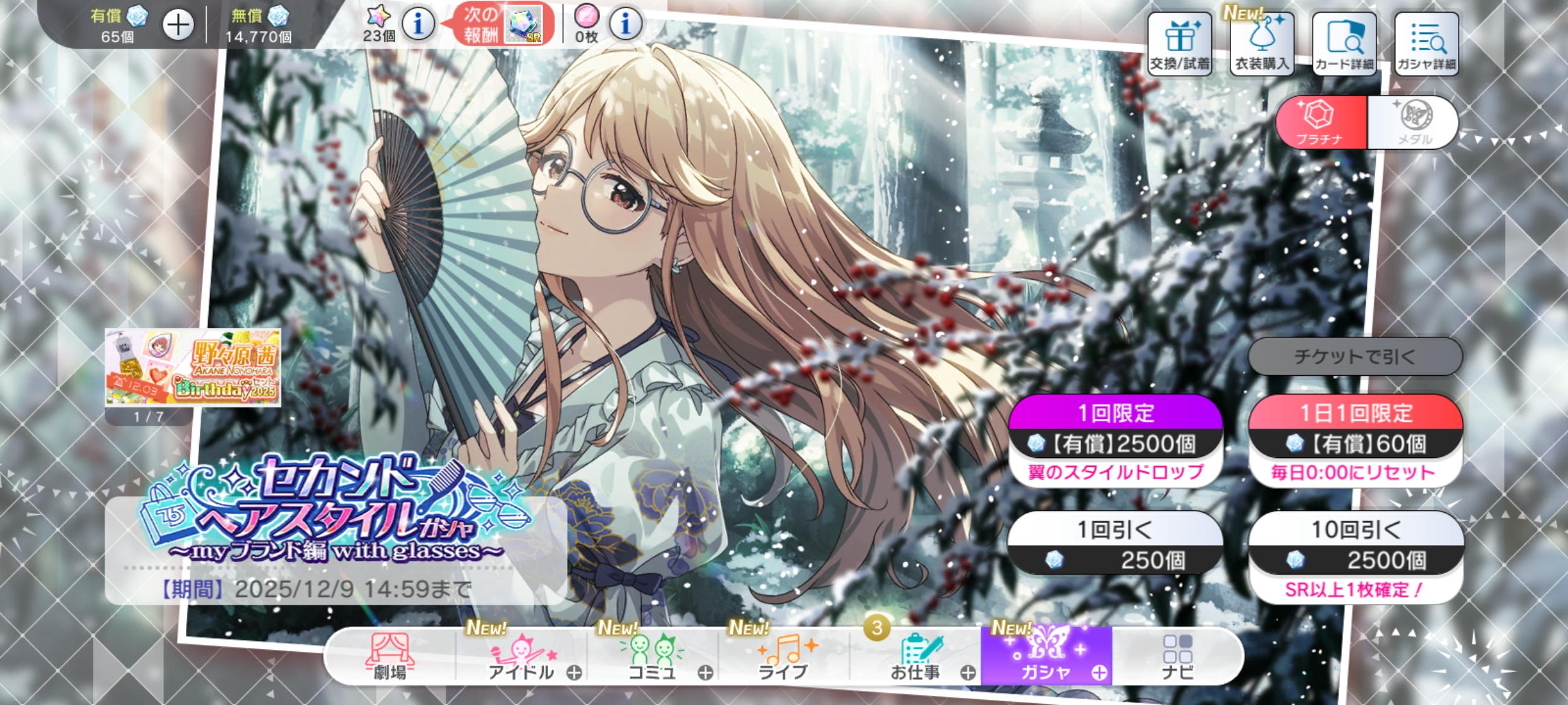 [シャニマス]ウィンターキャンペーン2025 第1弾 SSR2倍!!限定入り1日1回10連無料ガシャ